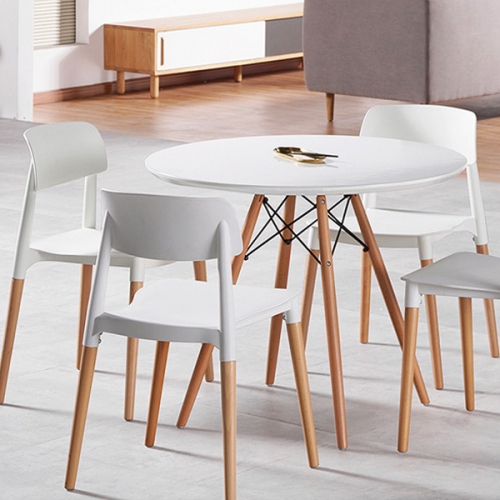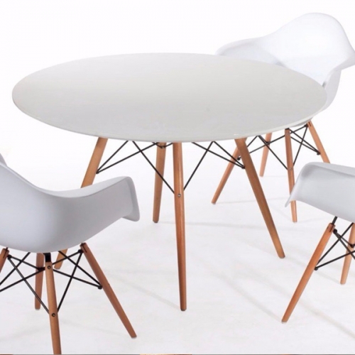 Mid Century Modern Round Table Dining Table Wood Leg and top, white / Natural Finishing Dining Room Furniture Dining Table Wooden